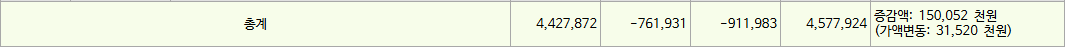 | 총계 | 3,115,273 | 595,159 | 621,289 | 3,089,143 | 증감액: -26,130원 (가액변동: 67,340원) |