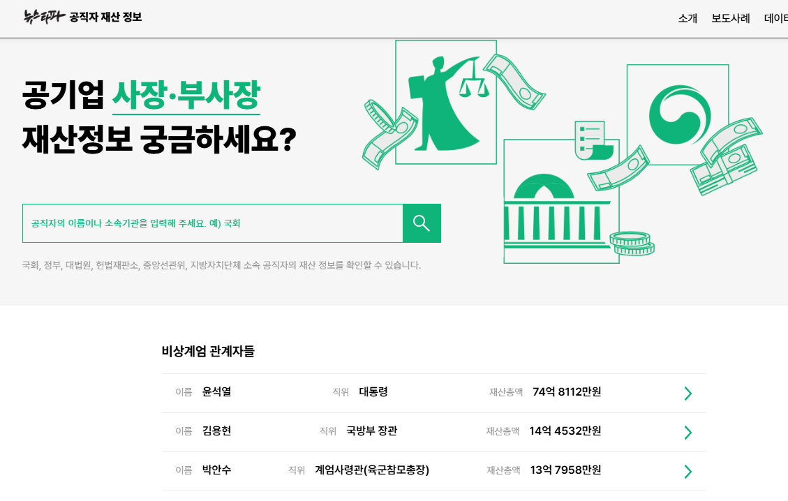 ▶ 뉴스타파 재산 정보 : 시각화된 데이터 제공.