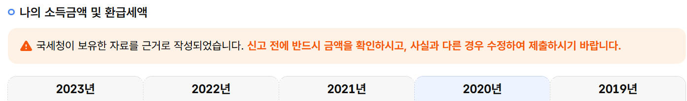 [ 년도별 소득금액 / 환급예상세액 확인 가능 ]