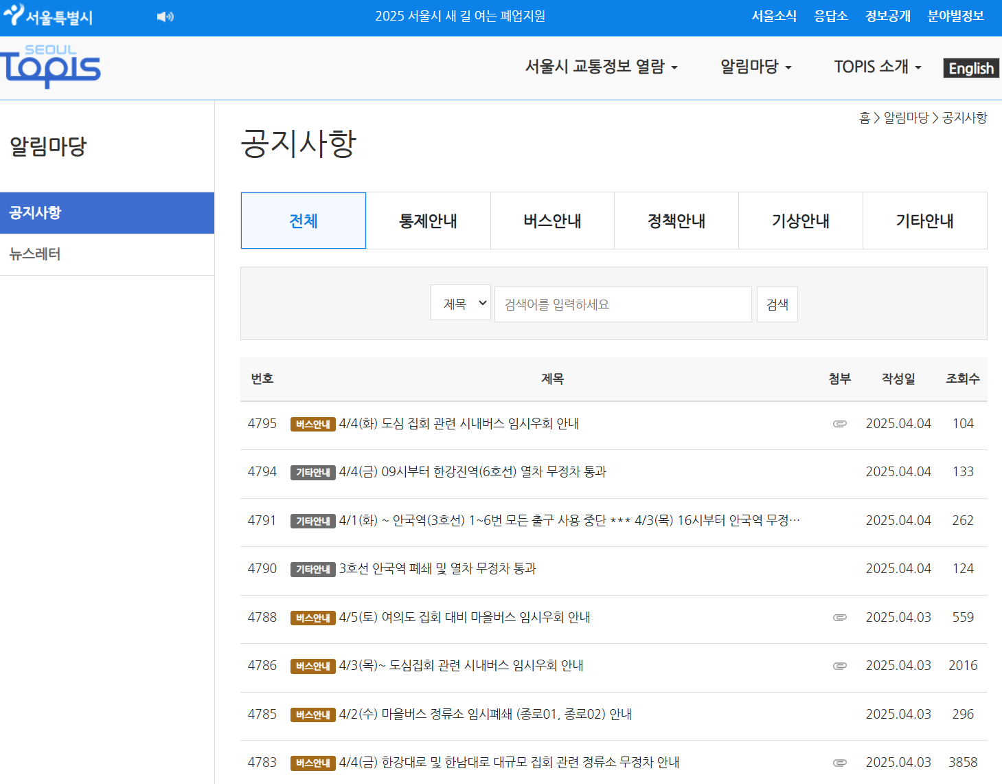 ▶ 서울시 교통정보 : 통제안내 및 우회로 보기