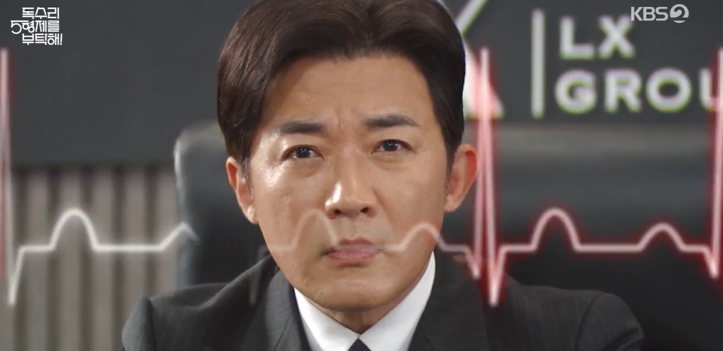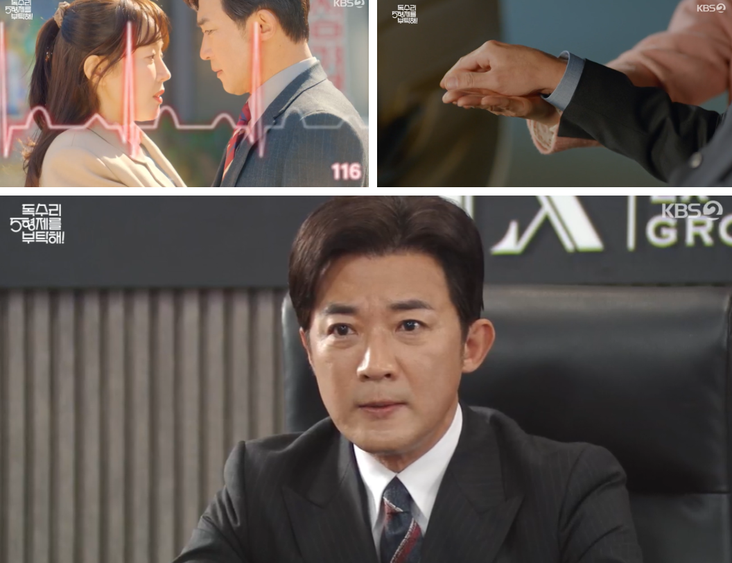 신나서 광숙이 내민손으로 하이파이브를 하던 한동석 회장은 심장의 두근거림에 당황하며 앞으로 내몸에 손대지 말라며 광숙과 거리를 둡니다.