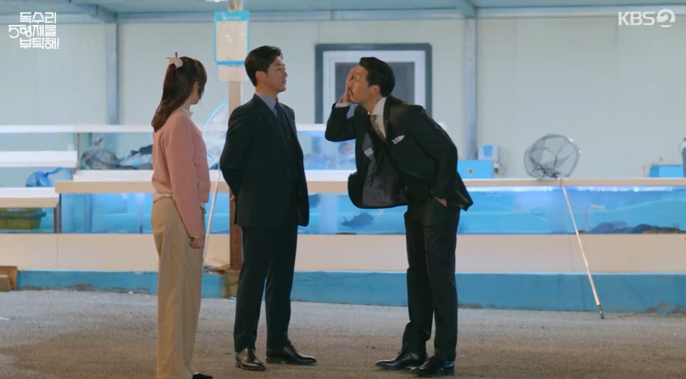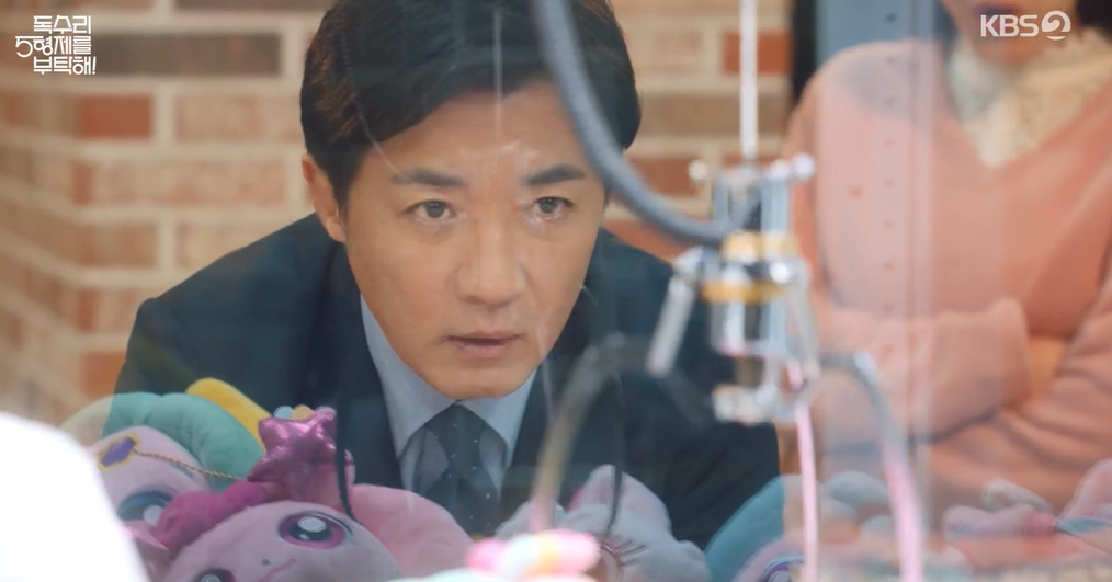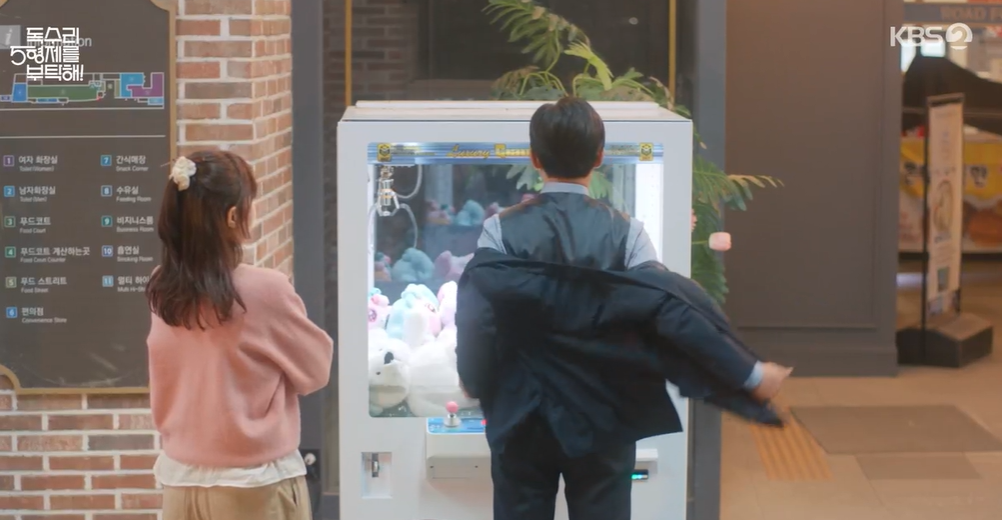 한회장이 화장실 간 사이 인형뽑기에 몰두한 광숙. 볼일을 보고 나온 한회장은 그런 광숙을 귀엽다는 듯 다가와 인형 뽑기에 대한 코치를 한답시고 폭풍 잔소리를 늘어놓습니다.