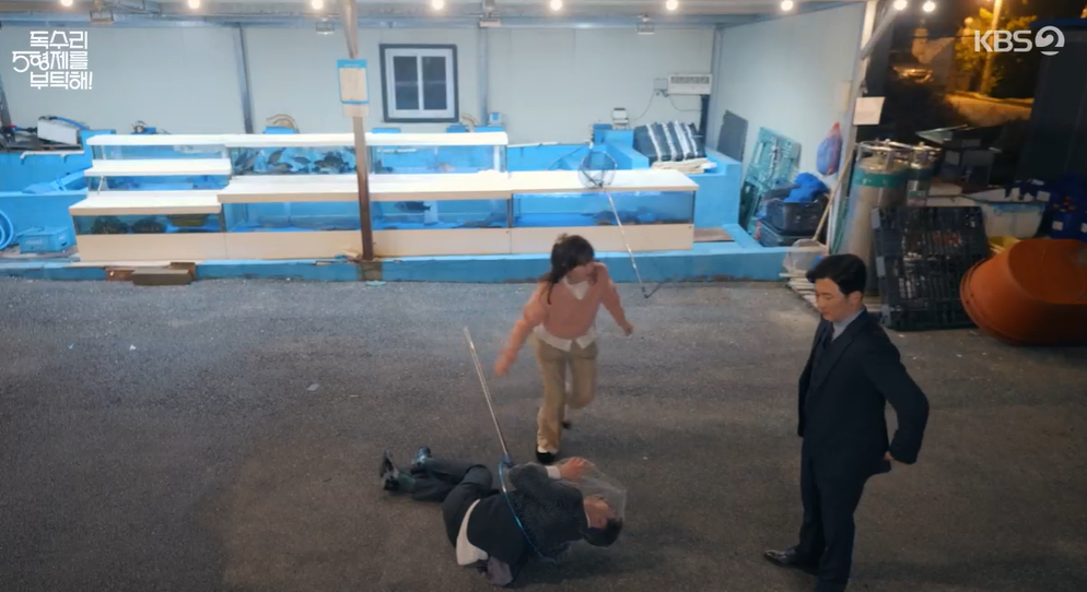 화가난 한회장도 만취해서 덤비는 박상남을 엎어치고 때려 눞히고 일어나 덤비려는 박상남에게 광숙이 그물망을 덮어 씌워버립니다. 서울로 향하려는데 무리를 한 한회장이 어리를 아파하고 결국 광숙의 차로 함께 이동하게 됩니다.