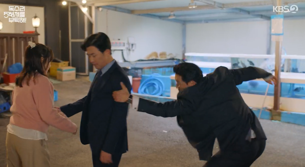 박상남은 만취해서 광숙을 억지로 잡고 이야기 하려고 하고 한회장이 무례하게 구는 박상남을 막아주고 박상남은 한회장에게 주먹을 휘두릅니다.