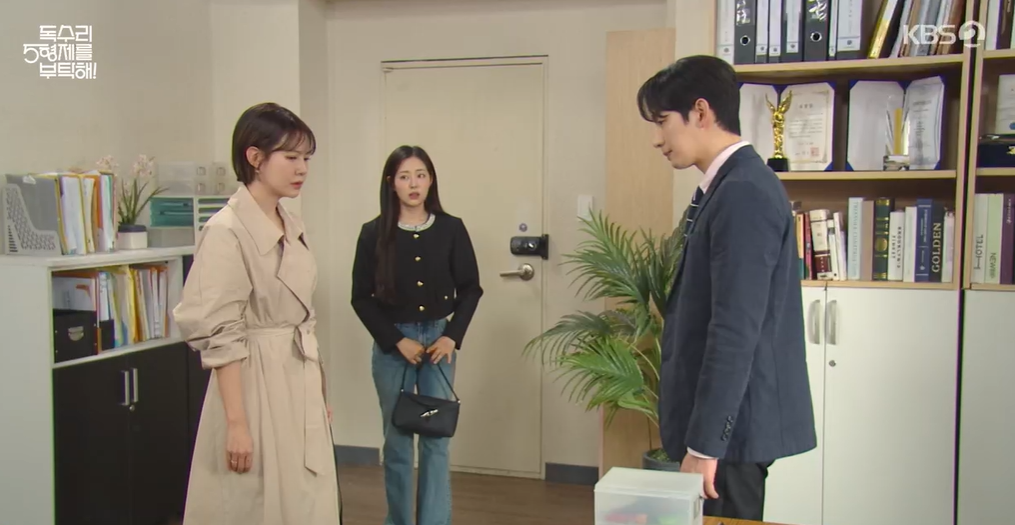 마침 조교인 세리가 들어왔다가 난처해하며 나가려고 하자 범수는 손님이제 가실거라며 괜찮다고 하고 하니엄마는 마지못해 돌아갑니다.