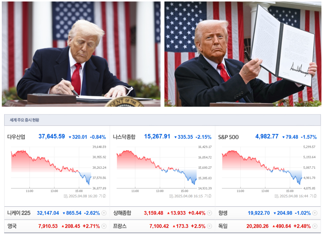 2025년 4월 9일, 미국이 도널드 트럼프 대통령의 주도로 전 세계를 대상으로 한 트럼프 상호관세 정책을 본격 시행했습니다. 이 정책은 미국 동부 시각 4월 9일 0시 1분(한국 시각 오후 1시 1분)부터 발효되며, 모든 수입품에 기본 10% 관세를 부과하고 국가별로 차등화된 상호관세를 적용합니다. 특히 보복 관세로 맞선 중국은 104%라는 초고율 관세를 부과받으며 미중 무역 갈등이 새로운 국면에 접어들었습니다. 이 글에서는 트럼프 상호관세의 국가별 관세율, 각국의 대응, 그리고 협상 내역 및 전망을 다뤄보겠습니다.