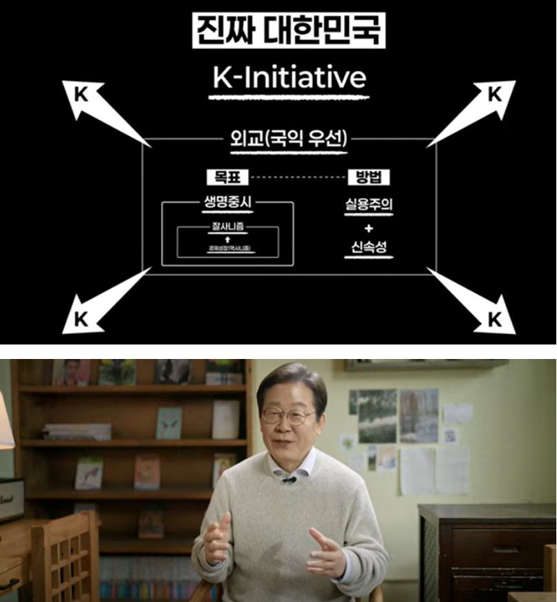 한미동맹과 한미일 협력을 유지하되, “대한민국의 국익이 최우선”이라는 원칙을 세웠습니다. 국가 간 경쟁과 협력을 조율하며, 기업과 정부의 협력을 통해 국제 경쟁력을 강화하겠다는 구상입니다. - K-이니셔티브와 문화 강국