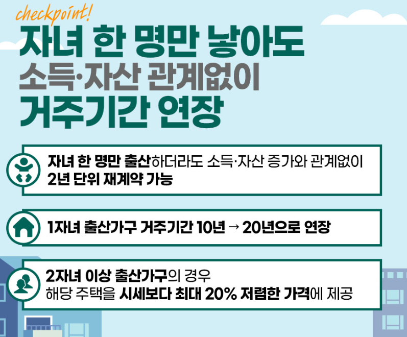 서울시 신혼부부 미리내집의 매력은 풍성한 혜택에 있습니다. 기본 거주 기간은 10년이지만, 자녀 출산 시 2년 단위로 재계약해 최대 20년까지 연장 가능합니다. 자녀 2명 이상이면 시세보다 10~20% 저렴하게 주택을 매수할 수 있는 우선매수권도 주어집니다. 전세금은 최저 2억 1,700만 원(중랑구 가현 월디움 면목 1차 48㎡)부터 최고 9억 7,500만 원(서초구 래미안 원펜타스 59㎡)까지로, 시세 대비 저렴한 수준입니다.