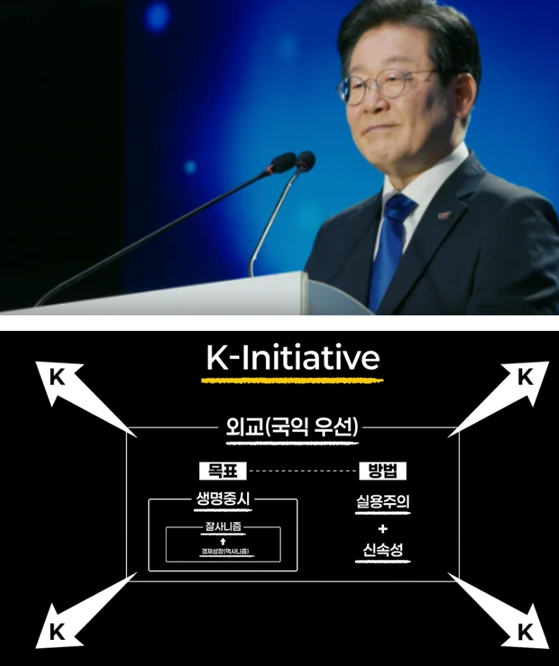 K-이니셔티브는 K-민주주의, K-컬쳐, K-과학기술, K-브랜드를 중심으로 대한민국의 소프트파워를 극대화해 경제 성장과 글로벌 리더십을 달성하겠다는 비전입니다. 이 대표는 “양적 성장에만 매달리던 기능 중심 사회의 한계를 넘어, 질적 성장을 추구하는 가치 중심 사회로 나아가야 한다”고 강조했습니다. 이는 윤석열 정부의 민간 주도 경제와 차별화된, 정부 주도의 대대적 투자와 실용주의를 기반으로 한 정책 방향을 나타냅니다.