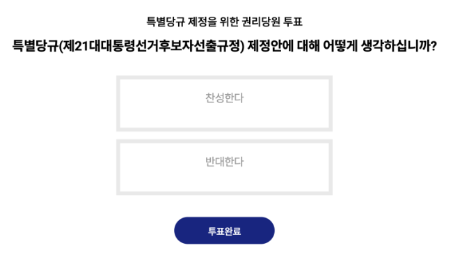 ▶ 더불어 민주당 특별당규 변경 투표 (완료됨)