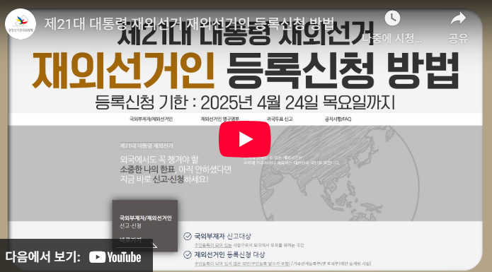 ▶ 국외부재자/ 재외선거인 제21대 대통령 재외선거 신청하기
