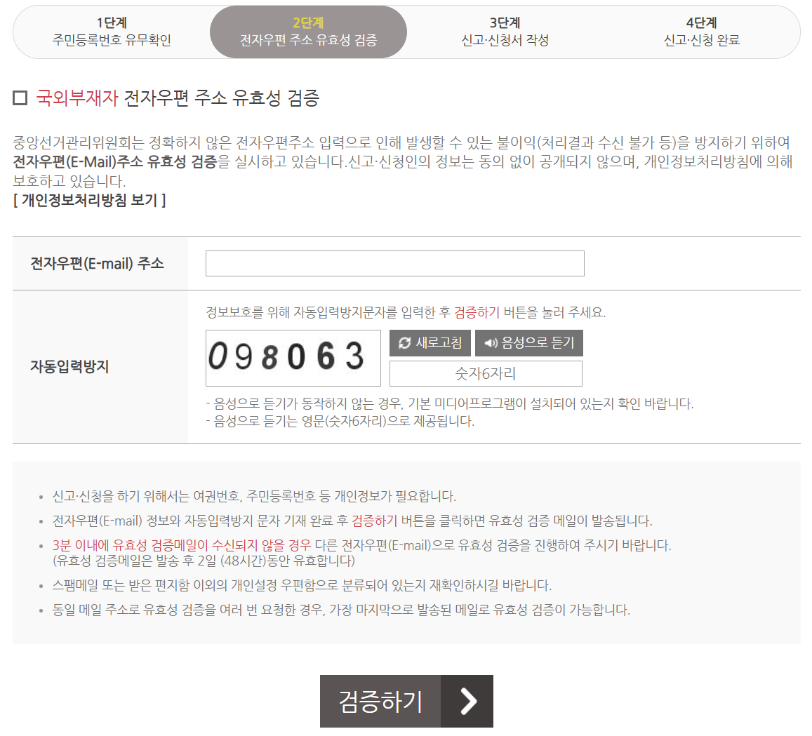 2단계까지 진행하시면 입력하신 이메일로 유효성검증 메일이 발송이 되고, 해당 메일에서 링크를 클릭하시면 자동으로 3단계로 진행이 됩니다.