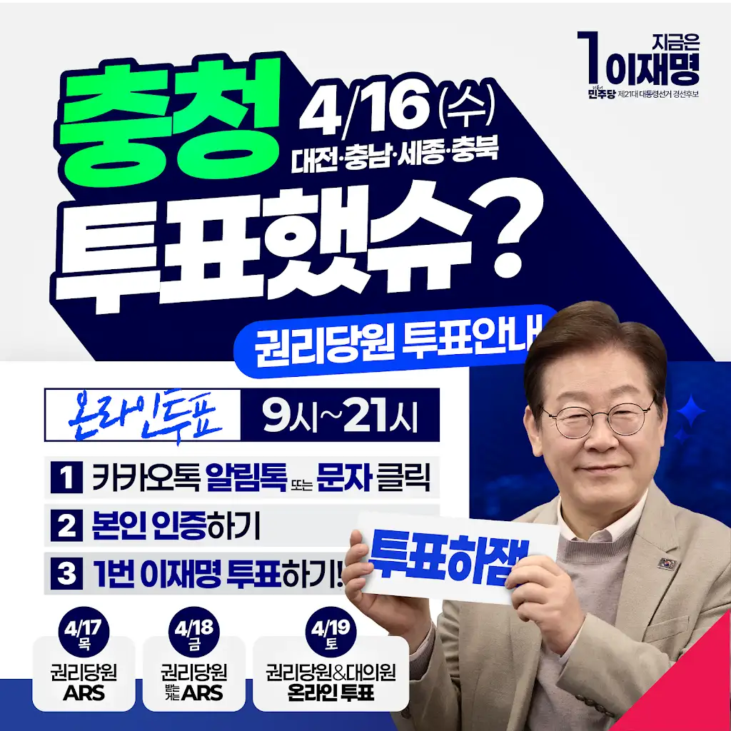 - 충청권 (대전·세종·충남·충북) 순회 투표 : 4월 16일~19일
