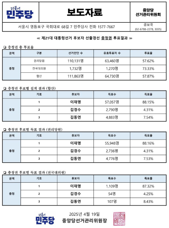 목차 2025년 4월 19일, 더불어민주당은 제21대 대통령 선거 후보를 선출하기 위한 충청권 경선 결과를 청주체육관에서 발표합니다. 윤석열 전 대통령의 파면으로 촉발된 조기 대선의 첫 지역 경선