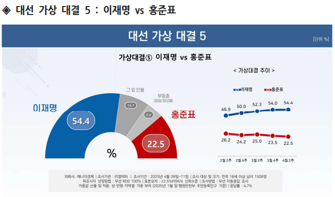 사진 출처: 리얼미터 지지율 주간 통계표 2025년 4월 14일