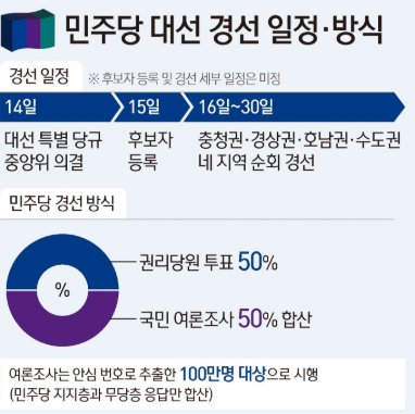 목차 민주당 경선일정 총정리: 순회경선 : 충청권, 영남권, 호남권, 수도권 민주당 경선일정 (순회경선 일정) 더불어민주당은 2025년 4월 13일, 제21대 대통령 선거 후보 선출을 위한 새로운 경선 규
