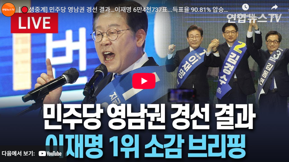 ▶ 민주당 영남 경선 결과 : 이재명 90.81% 압승 ( 투표율 70.88%)