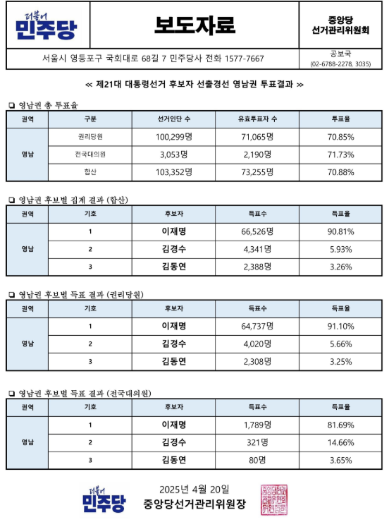 민주당 영남 경선 결과 : 역대 경선 결과와 2025년 영남권 경선 결과 전망
