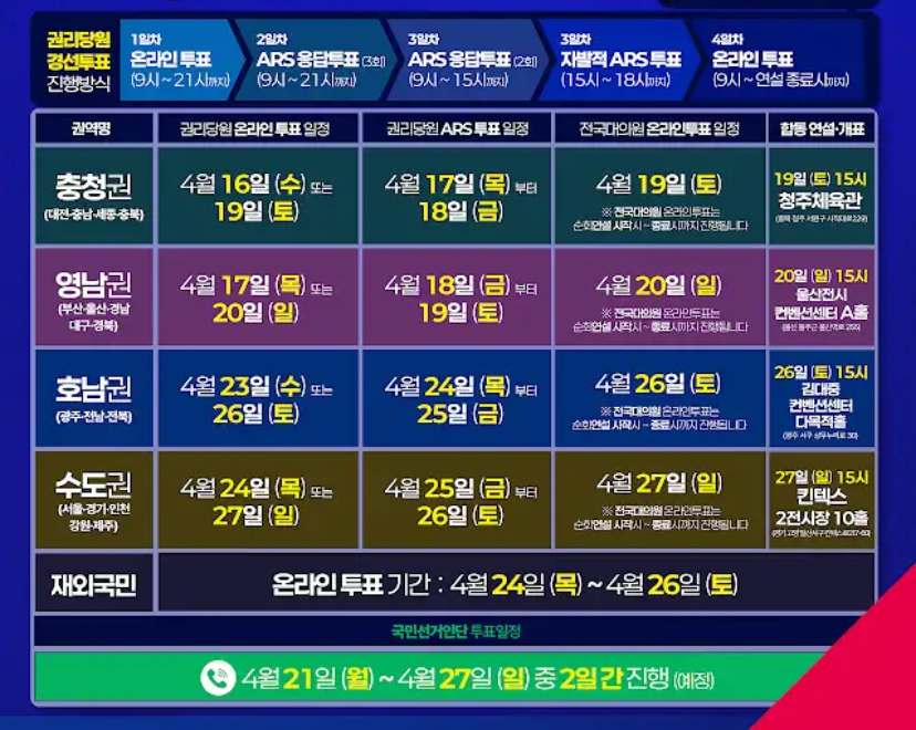 ★ 민주당 경선일정 총정리 ★ 투표방법 & 순회경선 일정 ( 충청, 영남, 호남, 수도권 )
