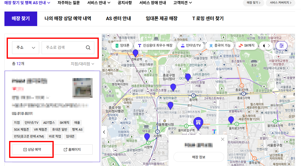 ▶ SKT 유심 교체 장소 (T월드 매장 찾기)