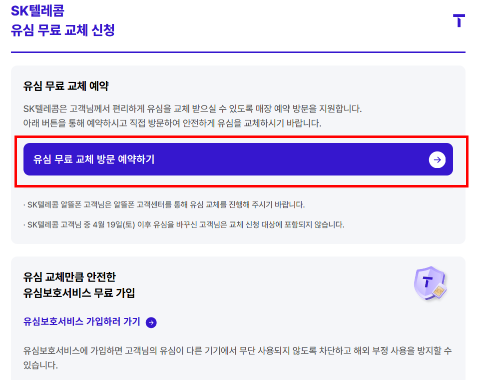유심 교체 수요가 몰릴 경우, 당일 교체가 어려울 수 있습니다. SKT는 이를 대비해 예약 시스템을 운영합니다. 예약 방법은 다음과 같습니다.