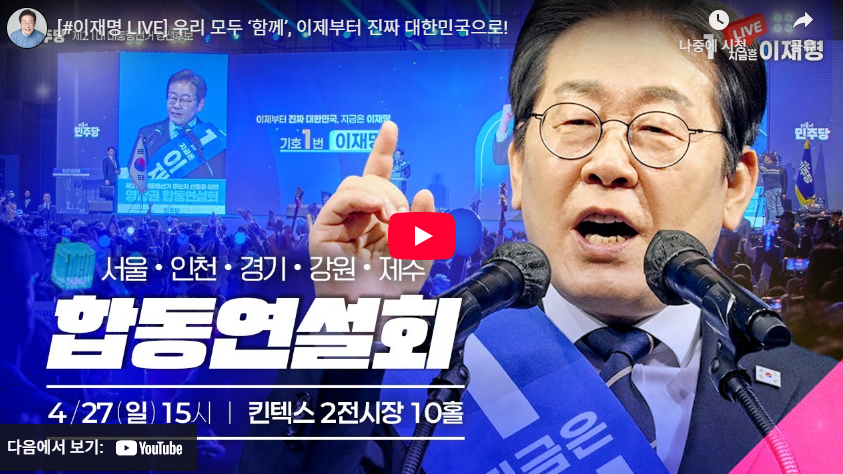 - 민주당 수도권 경선 합동연설회 : 4월 27일 15시