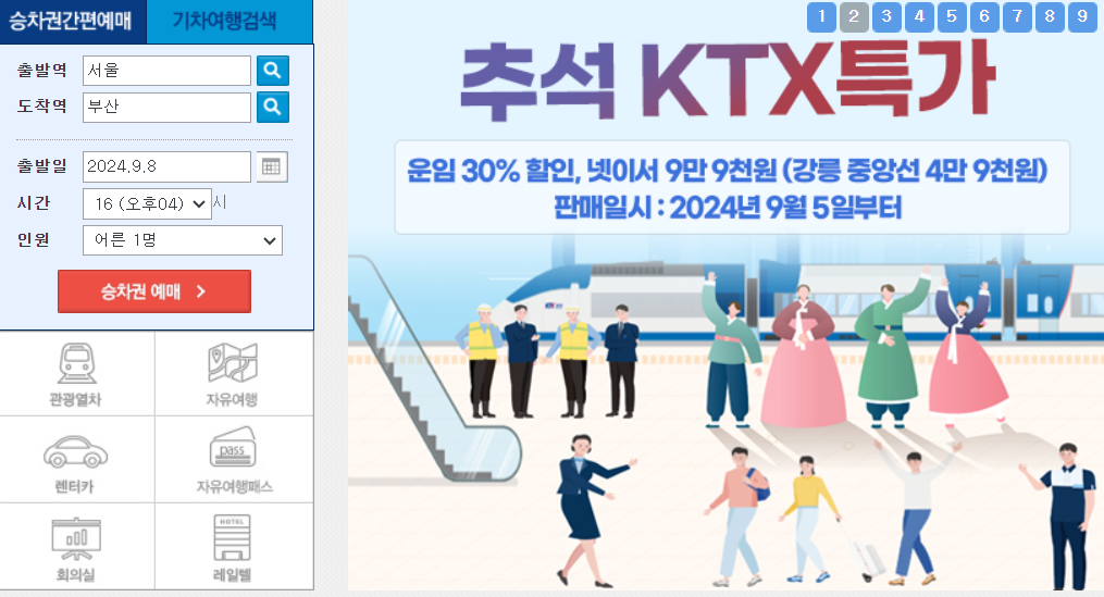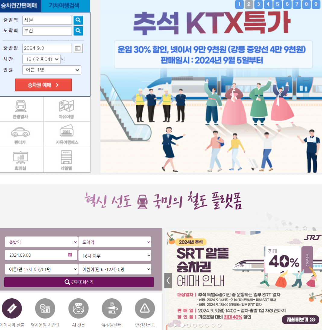 추석명절이 코앞으로 다가왔는데 고향 가시는 표 못구하신분들 많으시죠? 표가 필요한 분들 많은데 정작 예매된 후 노쇼로 취소되는 표가 20만표에 달한다고 하네요. 이를 방지하기 위해 철도 운영 기관들이 노쇼방지 및 재판매를 위한 대책으로 9월 9일 부터 최대 40%까지 할인하여 특가 프로모션을 통해 표를 재판매를 한다고 하니 필요하신분은 주목해주세요!