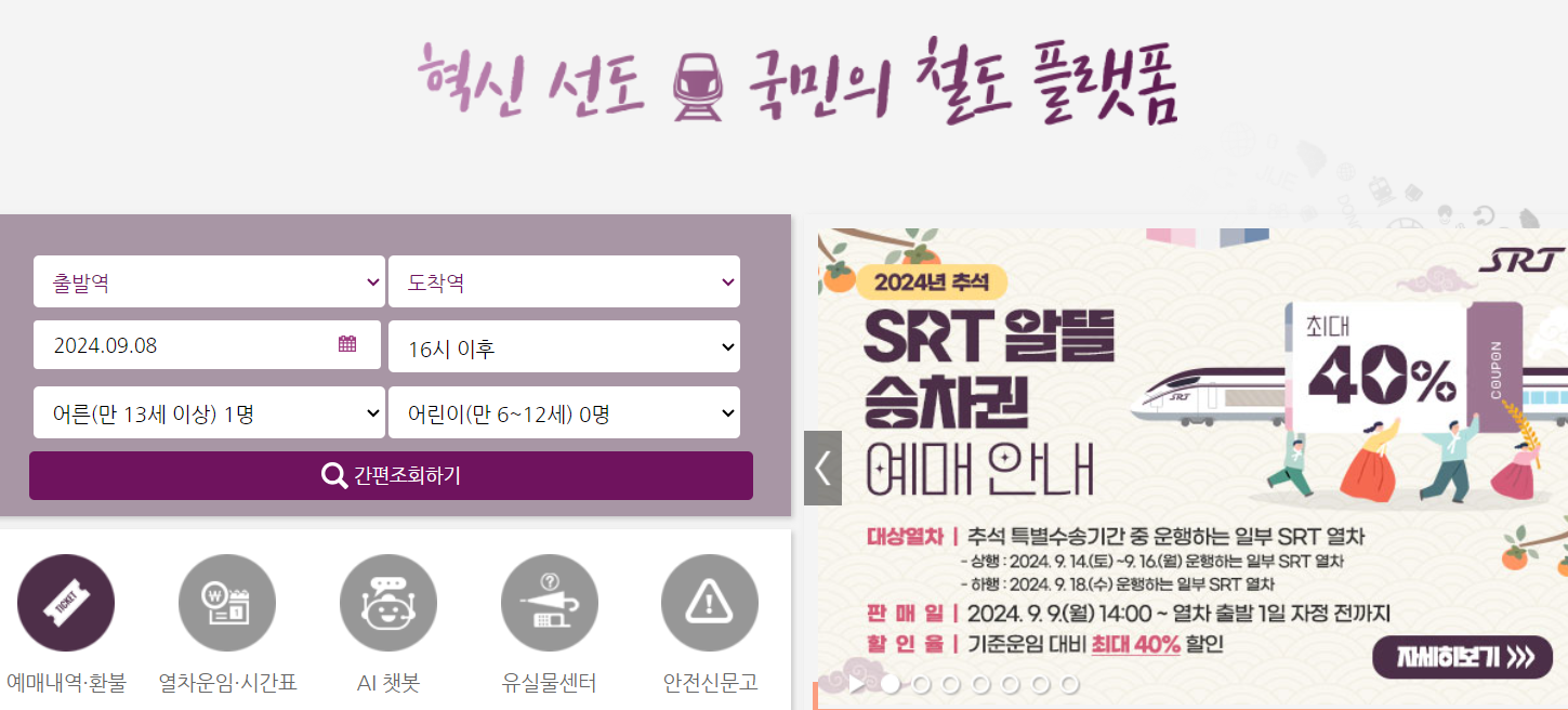 SRT 취소표 , 알뜰 승차권 예매 안내