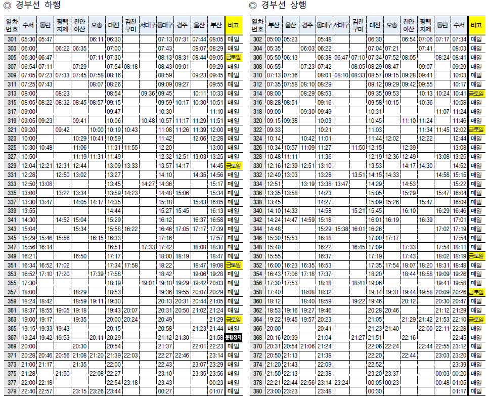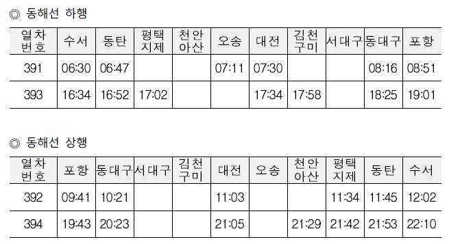 ※ 일부 열차는 특정 역을 무정차 통과하므로, 예매 시 개별 운행 정보를 확인하세요.