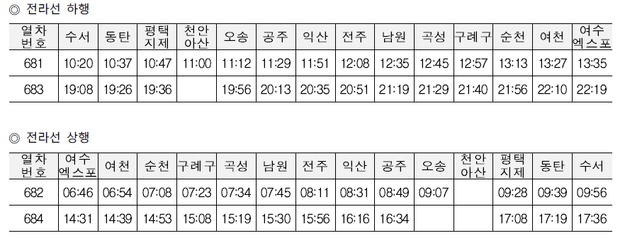 | 출발역 | 수서역(SRT 전용) | 서울역 및 용산역 |