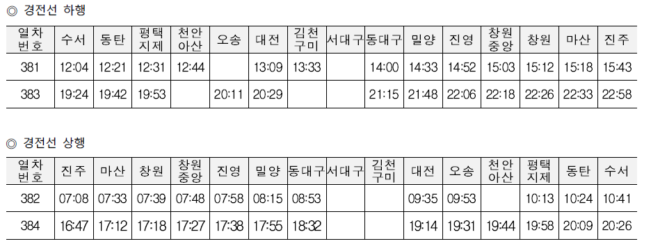SRT 경전선 열차 시간표