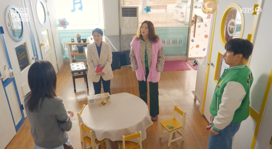 상황을 우연히 보게된 세리가 나서서 아이를 봐주겠다고, 아이를 돌본 경험이 많다고 큰소리 칩니다.