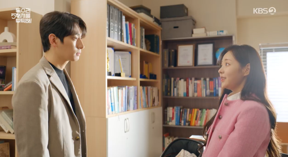 인기척에 일어난 세리에게 범수는 고맙다는 인사를 전하고, 학생이니 말씀 편하게 하시라며 살갑구는 세리에게 범수도 말을 놓으며 고마움의 표시로 나중에 맛있는 밥을 사겠다고 합니다.