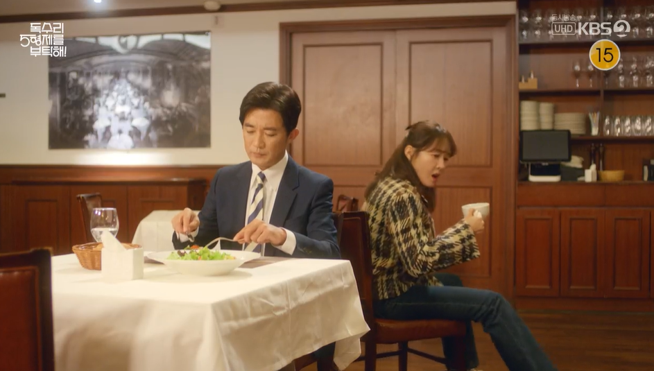 쌀쌀맞게 구는 한회장의 태도에 굴하지 않고 결국 식사자리까지 쫒아간 마광숙.