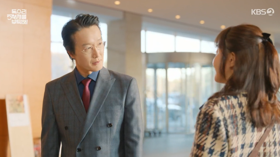 흥수는 레슨을 하는 김원장을 넉놓고 보다가 마침 부동산 사장님과 함께 김원장네 가게를 보러온 미용실 지원장과 마주치고, 이렇게 학생들 가게를 이유없이 드나드나며 다그치는 지원장때문에 난처해 합니다