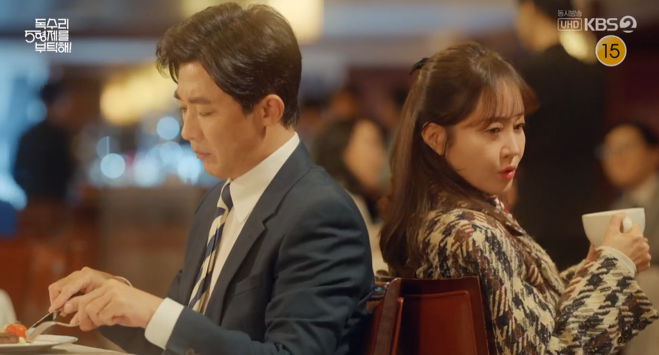 혼자 식사를 하는 한회장에가 슬쩍 말을 걸고는 결국 혼자 밥먹는게 쓸쓸해 보인다며 참견을 하고 함께 식사를 해주겠다는 마광숙을 피해 결국 한회장도 식사를 멈추고 일어나 가버립니다.