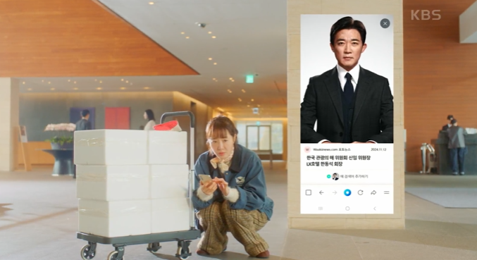 한동석이 도어맨이 아니라 호텔 회장인 것을 알게된 마광숙은 그제서야 인터넷 검색을 해보며 한동석에 대해 알게되고 당황해 합니다.