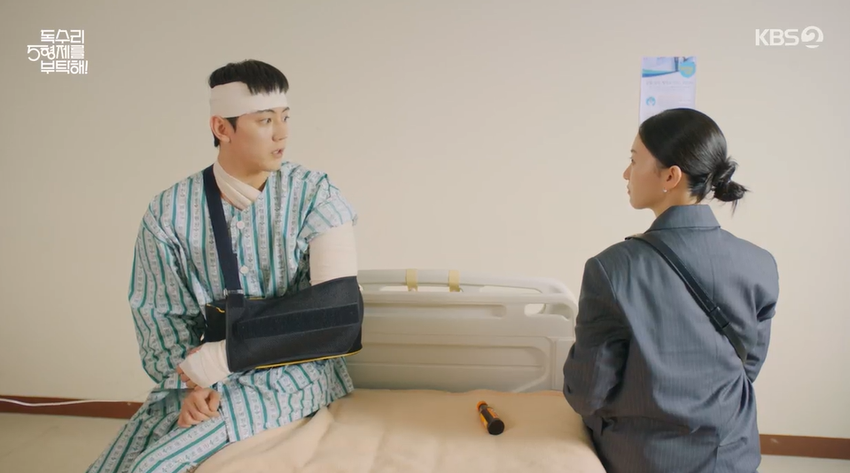 결이한테 자신을 구해줬던 강수가 다른 병사를 구하려다가 사고를 당해 수술을 받았다는 소식을 듣고 병문안을 온 봄이를 보고 설레여 하는 강수. 서로에게 호감이 있지만 표현을 못하는 두사람은 어색하지만 서로를 걱정해줍니다.