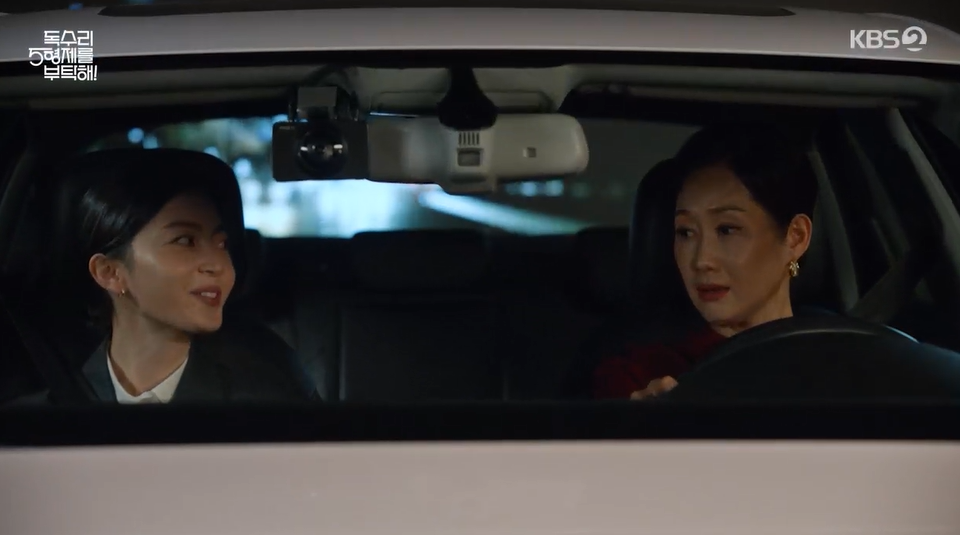 장미애는 집으로 돌아가는 길에 봄이도 태워서 대려다 주기로 하고, 함께 가면서 강수와 봄이가 어떻게 알게 되었는지 캐묻습니다.