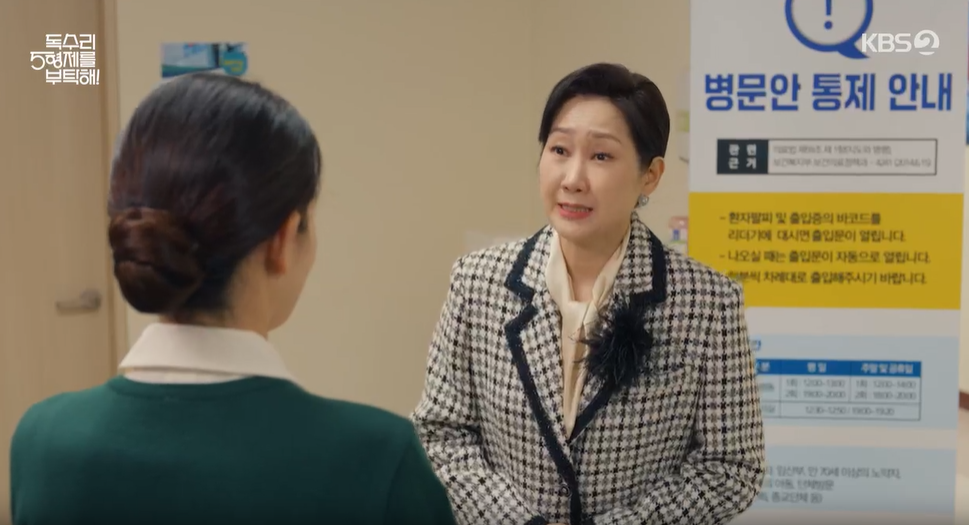 시동생들이 전화로 수술은 잘 끝났다고 연락 받았으니 진정하라고 하는데도, 광숙은 직접 눈으로 봐야 안심하겠다며 앞장서서 병원으로 들어갑니다.
