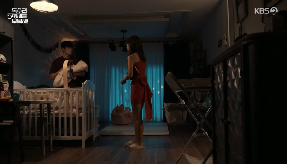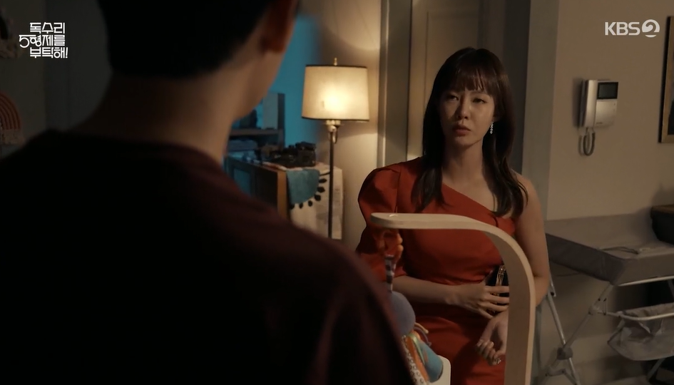 언성이 높아지자 하니가 놀라서 울고, 하니엄마는 약속시간 다 되었다며 범수와 아가 하니를 두고 나가버립니다.