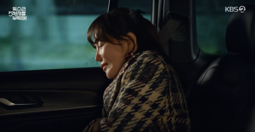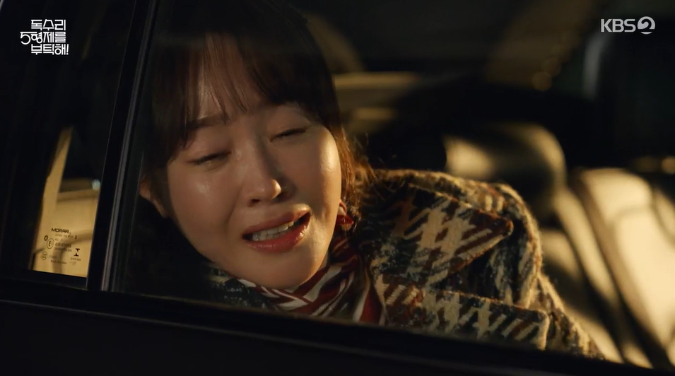 광숙이 자책하며 서럽게 울자 결국 차를 세우고 광숙을 진정시키는 범수.