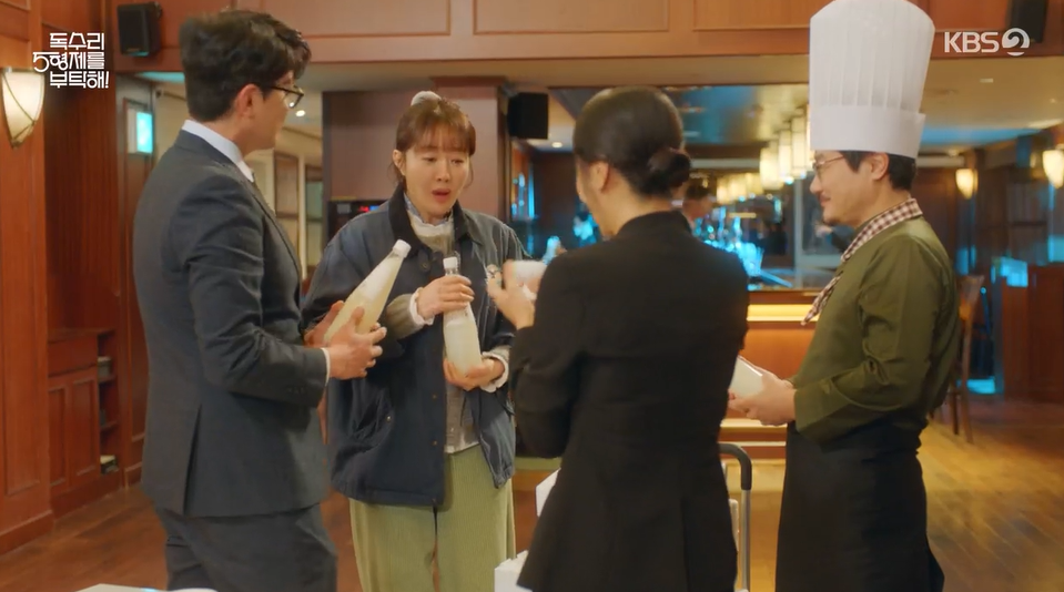 일상으로 돌아온 광숙. 장광주를 가지고 호텔로 가서 직원들과 시음을 하려다가 손이 미끄러져 장광주를 놓친 광숙때문에 마침 들른 한동석에게 막걸리가 다 쏟아집니다.