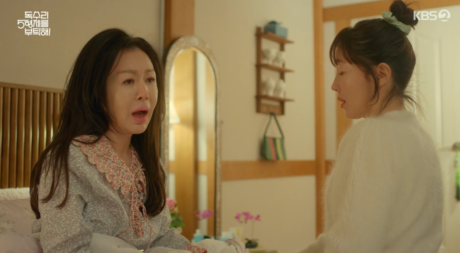 하루종일 오해를 받고 힘든 하루를 보낸 광숙은 집에 돌아와 몸이 안좋다며 누워서 눈물을 흘리고, 그 모습을 본 공주실은 걱정을 하는데 광숙은 쉬면 괜찮을 거라며 엄마한테 둘러댑니다.
