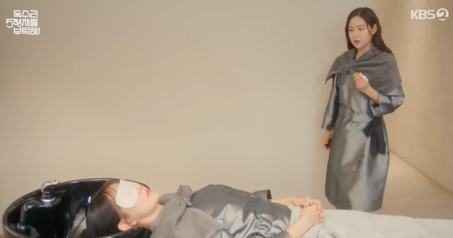 범수의 전처가 괘씸했던 세리는 엄마가 씹던 껌을 가지고 가서 샴프 대기중인 하니엄마 머리에 붙이며 범수 대신 소심한 복수를 합니다.