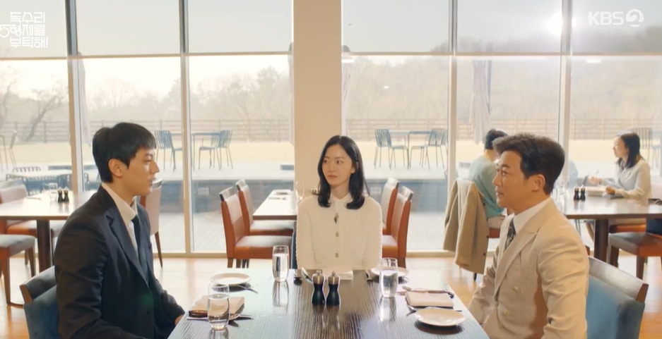 봄이를 구해줬던 일로 고맙다며 강수에게 식사를 대접하기로 한 한회장. 결이는 마침 일이있어서 봄이와강수, 한회장 셋이서 식사를 하게됩니다.