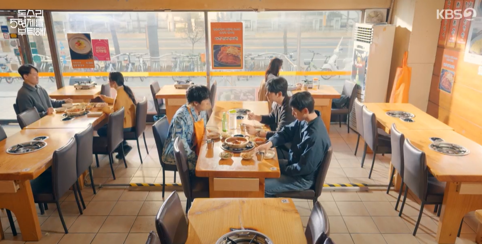 천수를 제외한 삼형제는 모여서 식사를 하면서 수연이 불륜관계였다는 사실에 충격을 받은 천수를 걱정합니다.