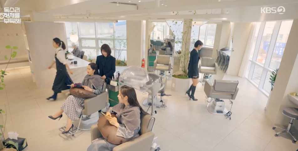 세리는 엄마와 미용실에서 머리를 하다가 마침 하니 엄마가 샾에 옵니다.