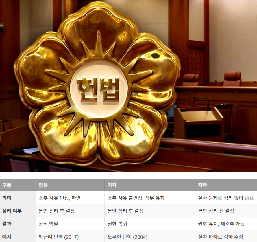 탄핵심판 기각, 인용, 각하 뜻과 차이점 총정리