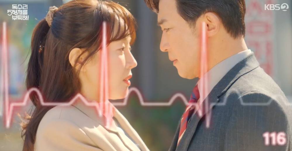 신나서 광숙이 내민손으로 하이파이브를 하던 한동석 회장은 심장의 두근거림에 당황하며 앞으로 내몸에 손대지 말라며 광숙과 거리를 둡니다.